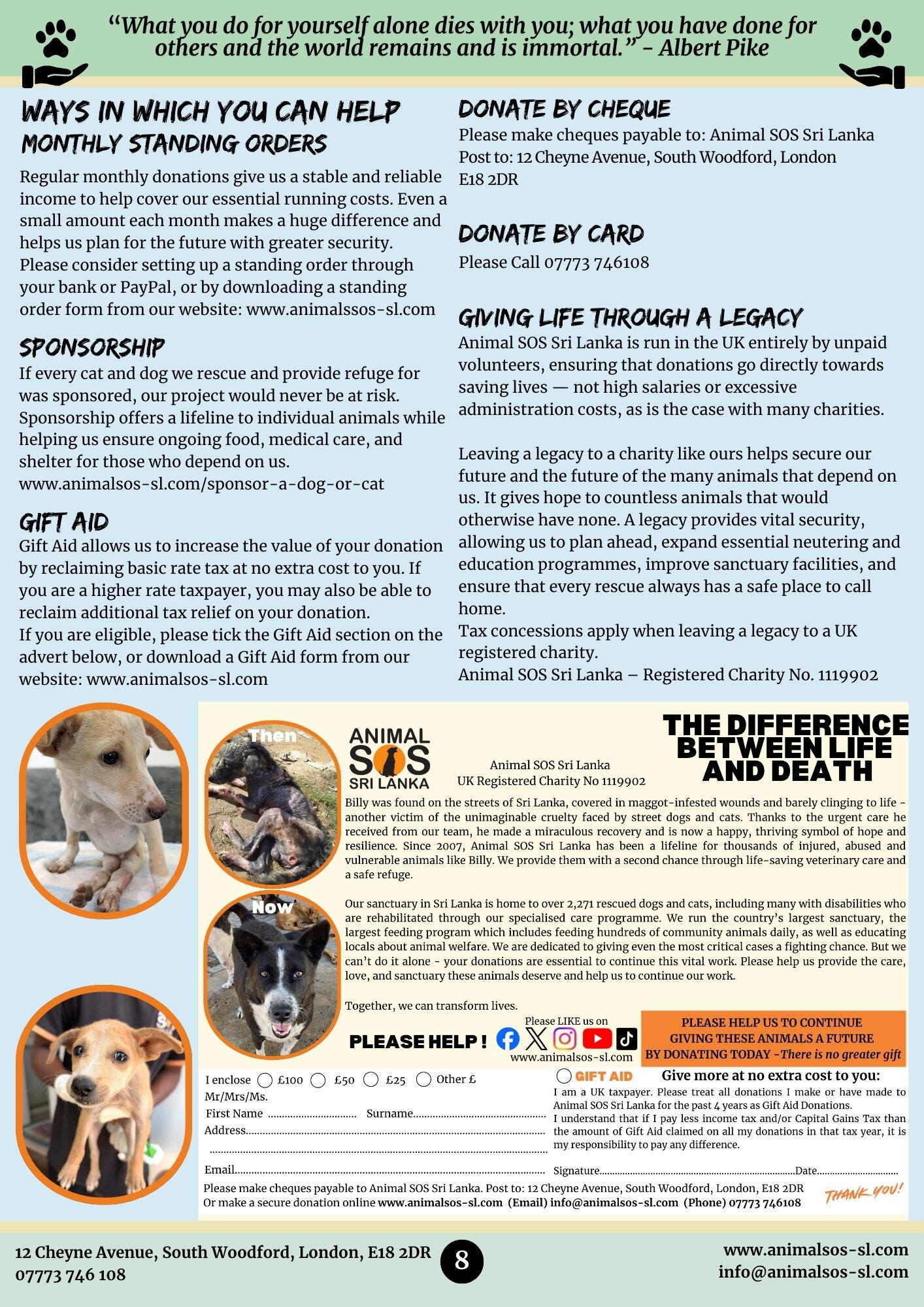 Bank - Barclays Bank PLCAccount Name - Animal SOS Sri LankaAccount Number - 10823767Sort Code - 20-52-74
